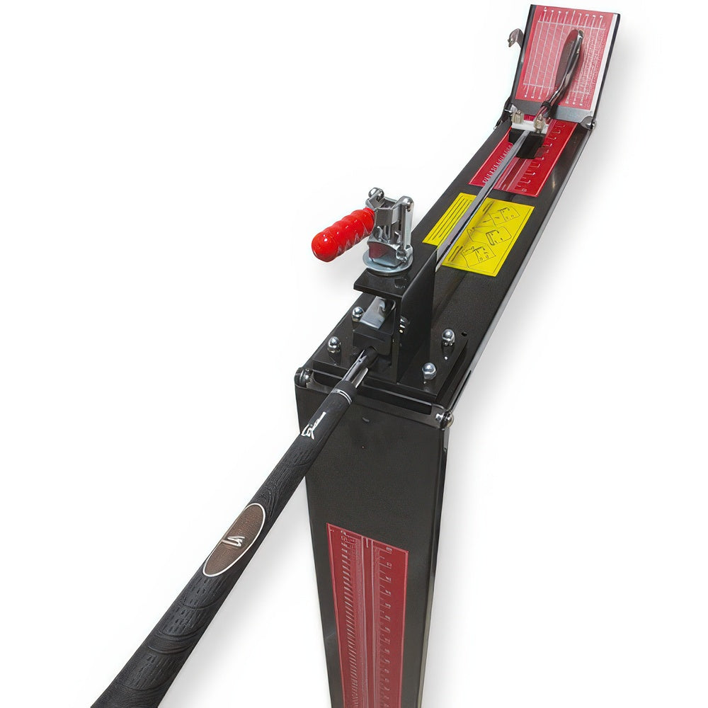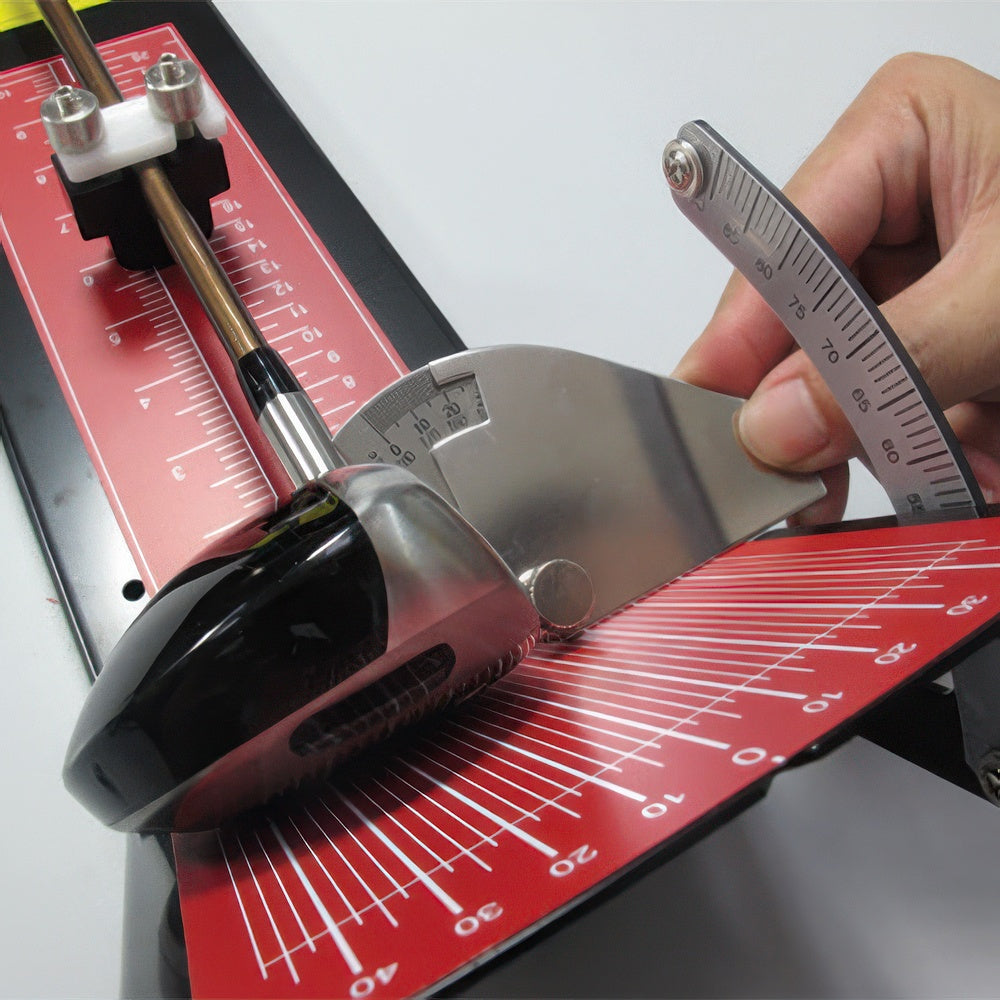 Schaftschneide-Lineal für genaues Kürzen der Schläger. Integrierter Lie-Winkelmesser sowie Offset-Ablesung gehören zur weiteren Ausstattung. Die leicht abnehmbare Schnellspannvorrichtung und das herunterklappbare Lineal sorgen für einfache Griffmontage.